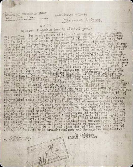 - Στα κρατητήρια του ΕΛΑΣ στη Θεσσαλονίκη στις 26 Οκτωβρίου 1944 υπήρχαν ήδη 350 έγκλειστοι, ενώ οι συλλήψεις ακόμα και απλά πολιτικών αντιπάλων συνεχίζονταν σε έντονο ρυθμό (Στράτος Δορδανάς, Η γερμανική στολή στη ναφθαλίνη – Επιβιώσεις του δοσιλογισμού στη Μακεδονία, 1945-1974, Εστία, Αθήνα 2012, σ. 52-53). ↑
